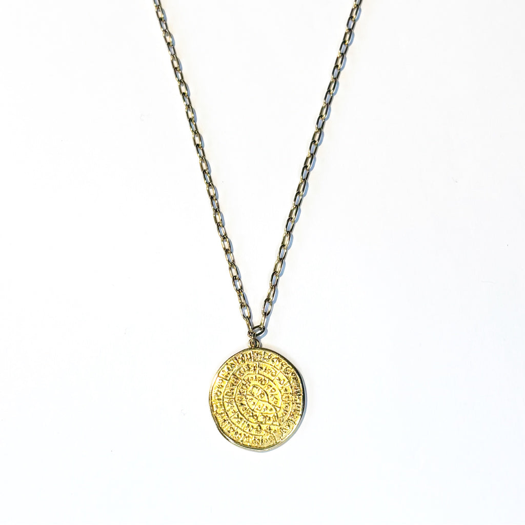 Médaille disque de Phaïstos doré à l'or fin 28mm
