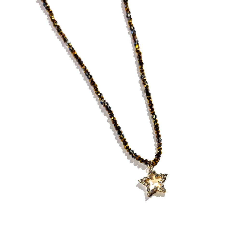 Collier perles de verre étoile strass